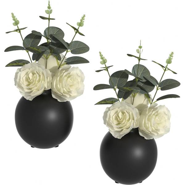 Transform your living space with our exquisite 2 pcs Artificial Plant Kit, featuring two elegant black vases adorned with stunning white roses and lush green leaves. These meticulously crafted artificial plants offer the perfect blend of sophistication and natural beauty, making them an ideal addition to any home or office decor.
